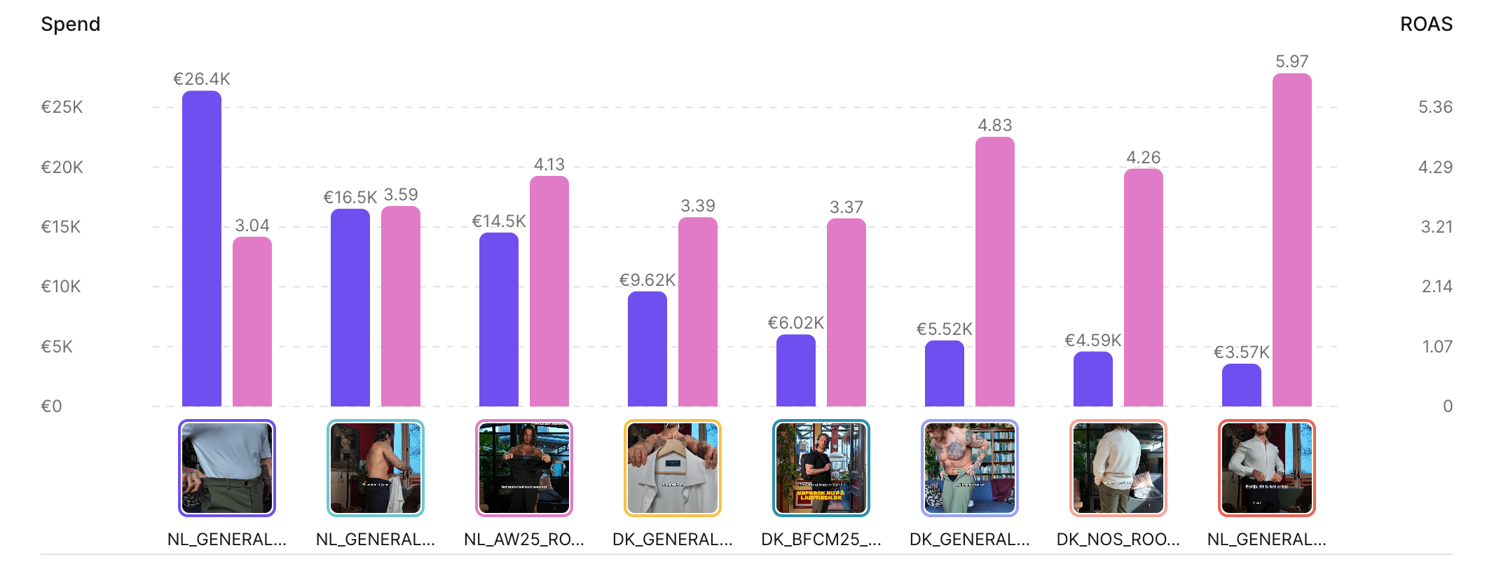 Across this period, €168,500 in marketing spend generated €566,789 in revenue.